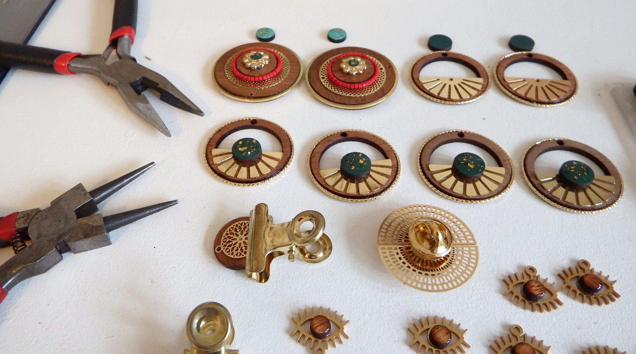 Mon atelier est l’endroit où s’effectue la partie artisanale. Le nettoyage des pièces après la découpe, le ponçage, la teinture, la peinture, le verni, le résinage, l’assemblage, la couture, les photos. J’y prépare également l’envoie des commandes avant affranchissement…Bref,c’est l’endroit où je passe le plus de temps à créer les pièces qui arrivent après chez vous!